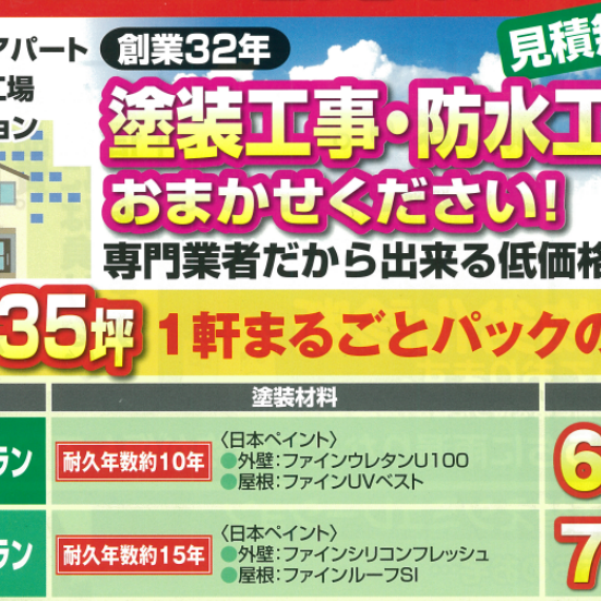 ――塗装工事『35平米丸ごとパック』とは 今お客さんって、絶対に相見積もり(あいみつ)とるんです。昔と違って、特にネット関係とかチラシ関係なんかですと。そうすると長く持たせたいっていう人とか、結局人って例えば洋服にお金か…